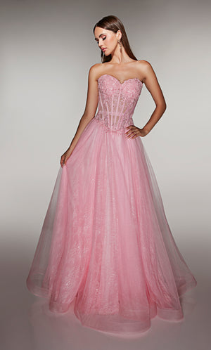 Gowns with lace are considered a timeless, feminine fabric used in the world of special occasions or as lace wedding dresses because there are so many ways to wear it. Lace formal dresses look stunning with both chunky beading as well as light and ethereal sparkle for long and short prom dresses. Lace is a delicate fabric due to its see-through and intricately embroidered patterns; if thick enough, lace’s structure will hide all your body flaws and sins. Soft, stretchy lace is used for long or short lace body con styles and homecoming dresses. ALYCE Paris has the perfect lace prom dresses.