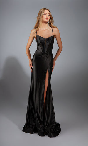 ALYCE Paris 61950 Alyce Long Plunging Slit Fit N Flare Dress