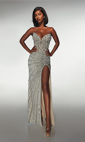 The straight/sheath (or column) silhouette gracefully skims to show off your body’s natural shape. A person with a thicker waist and wider hips will love this silhouette as it hides these flaws very comfortably. An ALYCE Paris formal straight/sheath evening dress style’s straight lines lengthen—and lend an effortless and modern air.