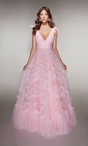 ALYCE Paris 62079 Alyce Long V-neckline Ruffles A Line Dress