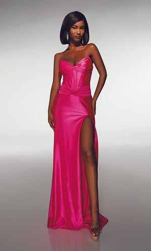 The straight/sheath (or column) silhouette gracefully skims to show off your body’s natural shape. A person with a thicker waist and wider hips will love this silhouette as it hides these flaws very comfortably. An ALYCE Paris formal straight/sheath evening dress style’s straight lines lengthen—and lend an effortless and modern air.