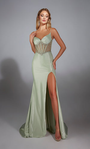 The straight/sheath (or column) silhouette gracefully skims to show off your body’s natural shape. A person with a thicker waist and wider hips will love this silhouette as it hides these flaws very comfortably. An ALYCE Paris formal straight/sheath evening dress style’s straight lines lengthen—and lend an effortless and modern air.