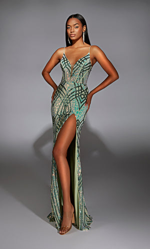 The straight/sheath (or column) silhouette gracefully skims to show off your body’s natural shape. A person with a thicker waist and wider hips will love this silhouette as it hides these flaws very comfortably. An ALYCE Paris formal straight/sheath evening dress style’s straight lines lengthen—and lend an effortless and modern air.