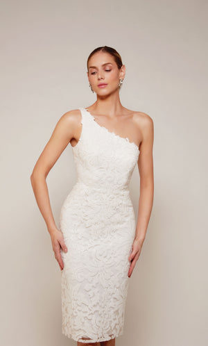 ALYCE Paris 70029 Bridal One Shoulder Neckline Shimmery/sparkly Straight Dress