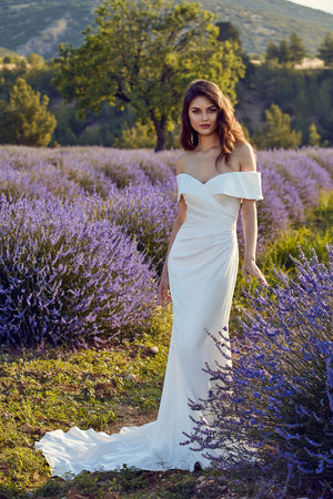 ALYCE Paris 7059 Bridal Off The Shoulder Neckline Simple Straight Dress