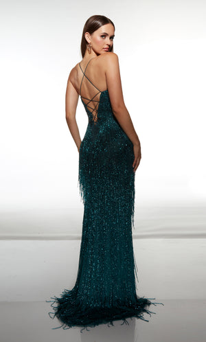 ALYCE Paris 62102 Alyce Long Plunging Neckline Fringe Straight Dress