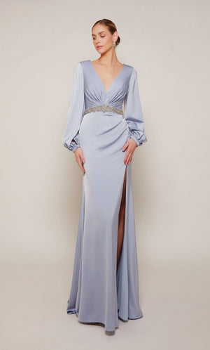 The straight/sheath (or column) silhouette gracefully skims to show off your body’s natural shape. A person with a thicker waist and wider hips will love this silhouette as it hides these flaws very comfortably. An ALYCE Paris formal straight/sheath evening dress style’s straight lines lengthen—and lend an effortless and modern air.