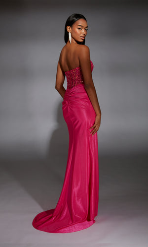 The straight/sheath (or column) silhouette gracefully skims to show off your body’s natural shape. A person with a thicker waist and wider hips will love this silhouette as it hides these flaws very comfortably. An ALYCE Paris formal straight/sheath evening dress style’s straight lines lengthen—and lend an effortless and modern air.