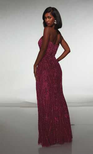 The straight/sheath (or column) silhouette gracefully skims to show off your body’s natural shape. A person with a thicker waist and wider hips will love this silhouette as it hides these flaws very comfortably. An ALYCE Paris formal straight/sheath evening dress style’s straight lines lengthen—and lend an effortless and modern air.