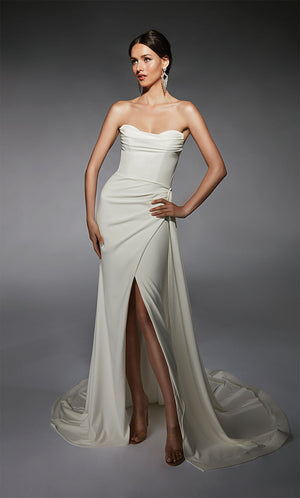 Duchess Alert! A wedding fit for a royal bride is beholden to one of our beautiful ALYCE Paris bridal dresses. ALYCE Paris unique wedding dresses are sure to allure on your big day at price points under $1,000. Find your perfect dream wedding dress available online in our bridal collection in a variety of styles, including black wedding dresses, long sleeve wedding dresses, plus size wedding dresses, even beach wedding dresses. Secret pro tip: call your local retailer to check if this dress can be a custom cut wedding dress in ivory, change the back or add a train! If you find the perfect long white dress, you can always cut down your long formal evening gown into any shapes of short bridal dresses as a last-ditch option!