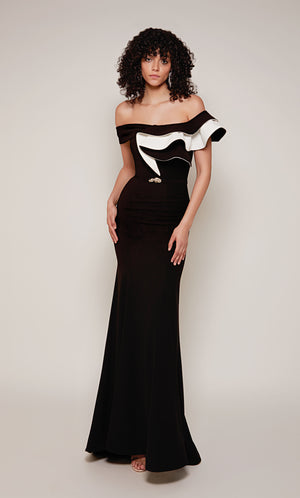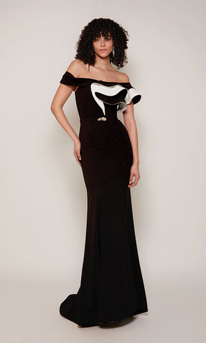 The straight/sheath (or column) silhouette gracefully skims to show off your body’s natural shape. A person with a thicker waist and wider hips will love this silhouette as it hides these flaws very comfortably. An ALYCE Paris formal straight/sheath evening dress style’s straight lines lengthen—and lend an effortless and modern air.