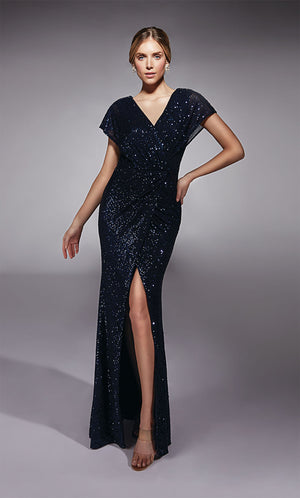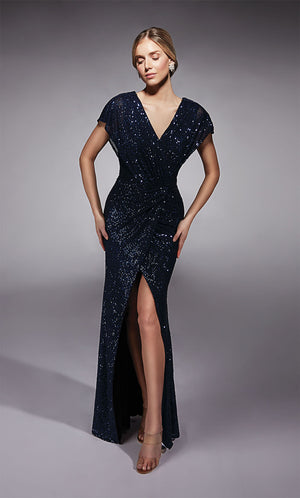 The straight/sheath (or column) silhouette gracefully skims to show off your body’s natural shape. A person with a thicker waist and wider hips will love this silhouette as it hides these flaws very comfortably. An ALYCE Paris formal straight/sheath evening dress style’s straight lines lengthen—and lend an effortless and modern air.