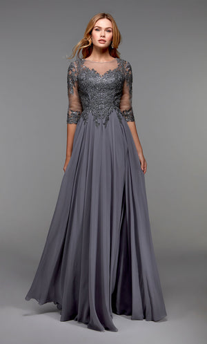 Gowns with lace are considered a timeless, feminine fabric used in the world of special occasions or as lace wedding dresses because there are so many ways to wear it. Lace formal dresses look stunning with both chunky beading as well as light and ethereal sparkle for long and short prom dresses. Lace is a delicate fabric due to its see-through and intricately embroidered patterns; if thick enough, lace’s structure will hide all your body flaws and sins. Soft, stretchy lace is used for long or short lace body con styles and homecoming dresses. ALYCE Paris has the perfect lace prom dresses.