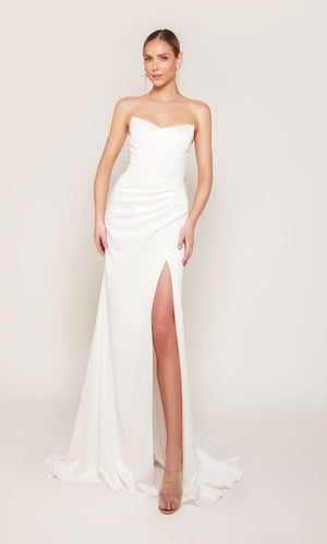 Duchess Alert! A wedding fit for a royal bride is beholden to one of our beautiful ALYCE Paris bridal dresses. ALYCE Paris unique wedding dresses are sure to allure on your big day at price points under $1,000. Find your perfect dream wedding dress available online in our bridal collection in a variety of styles, including black wedding dresses, long sleeve wedding dresses, plus size wedding dresses, even beach wedding dresses. Secret pro tip: call your local retailer to check if this dress can be a custom cut wedding dress in ivory, change the back or add a train! If you find the perfect long white dress, you can always cut down your long formal evening gown into any shapes of short bridal dresses as a last-ditch option!
