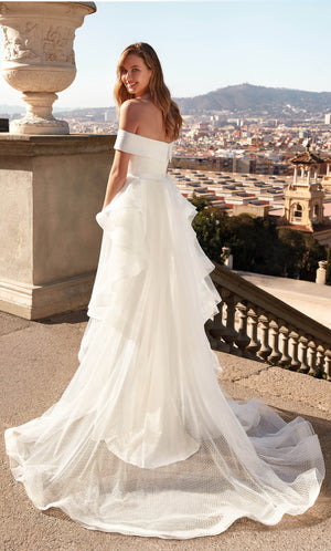 Alyce Paris 7020 Bridal Off the Shoulder Train Fit and Flare Vestido