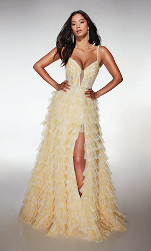 ALYCE Paris 62052 Alyce Long Plunging Neckline Ruffles A Line Dress