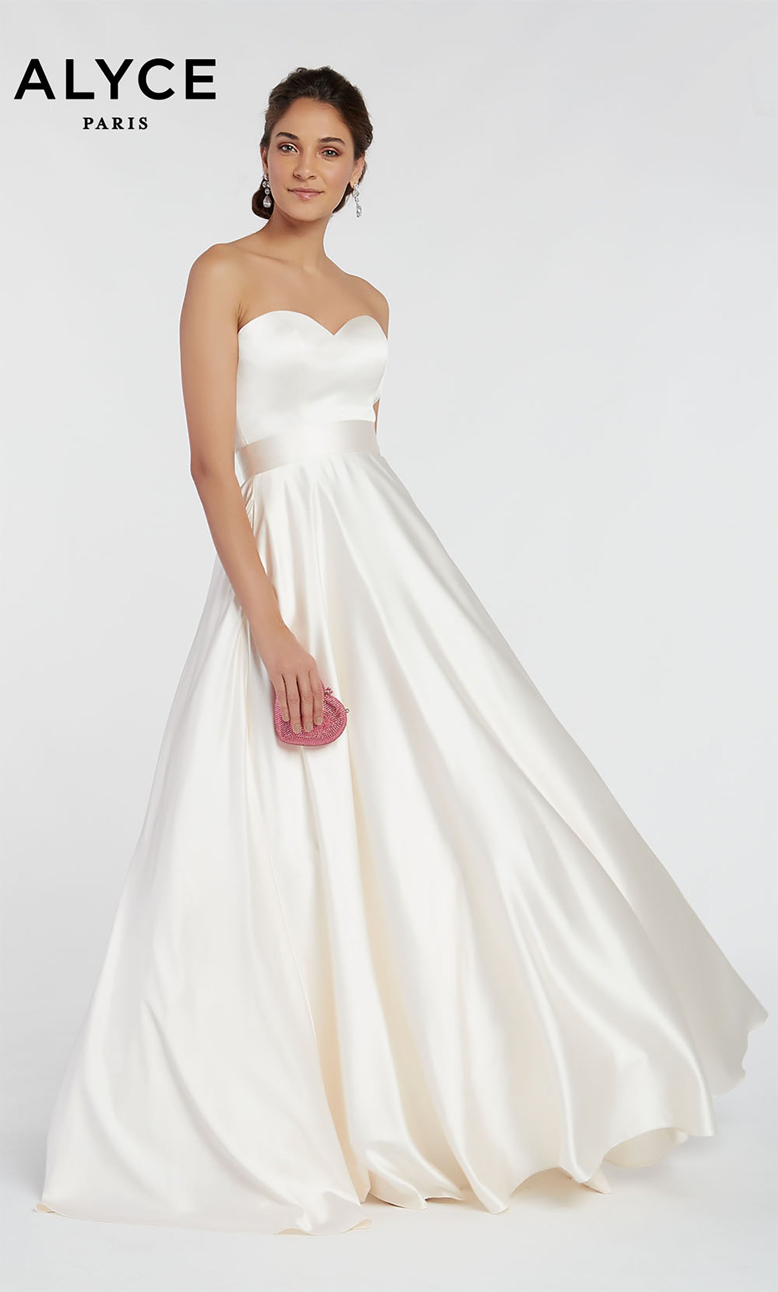 Shop beautiful designer 2026 prom dresses from the iconic ALYCE Paris online collection, with a variety of trendy sheer corset-style prom dresses, stunning high neck prom dresses, unforgettable open-back strappy gowns, flattering mermaid prom gowns, metallic satin prom dresses, and elegant A-line ball gowns that will stop traffic on your special night! Browse a wide range and find the best selection of the latest and most stylish long prom styles and short prom dresses in bright, bold colors that turn heads at any high school prom on the biggest night of the year! Go all out for senior prom in a fabulous one-shoulder black prom dress with a high slit and pair it with dramatic gold heels, which is an ensemble that you can wear again on the dance floor at a sorority event; For junior prom dances, shop our affordable selection of sleek, long or short, simple prom dresses; To buy your dream dress or plus size prom dresses up to size 32, use our store finder tool in the menu bar; Your perfect prom dress and the perfect fit exist at any authorized prom dress shop selling Alyce Paris!