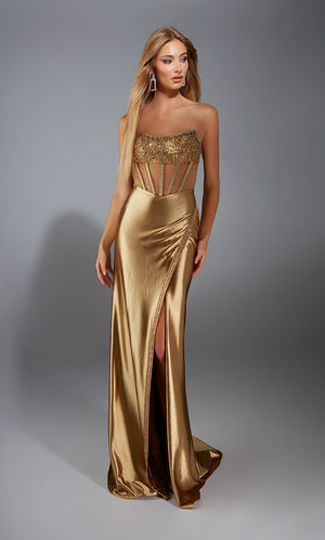 The straight/sheath (or column) silhouette gracefully skims to show off your body’s natural shape. A person with a thicker waist and wider hips will love this silhouette as it hides these flaws very comfortably. An ALYCE Paris formal straight/sheath evening dress style’s straight lines lengthen—and lend an effortless and modern air.
