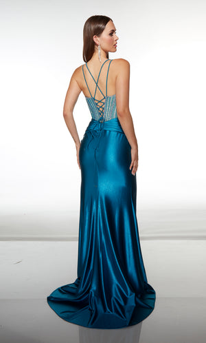 The straight/sheath (or column) silhouette gracefully skims to show off your body’s natural shape. A person with a thicker waist and wider hips will love this silhouette as it hides these flaws very comfortably. An ALYCE Paris formal straight/sheath evening dress style’s straight lines lengthen—and lend an effortless and modern air.