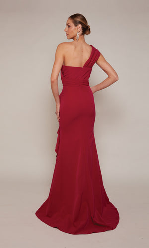 Asymmetrical single strap dress style that exudes a confident, unique goddess vibe and draws attention to your beautiful face and arms. Girls who wear one shoulder prom gowns and cocktail dresses can dance the night away knowing that no wardrobe malfunction will give them a time out on their special occasion. One shoulders are also great for knee length dresses and bridesmaid dresses because they can be dressed up as a formal gown or as a semi formal depending on the right high heels and jewelry.