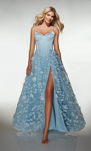 Gowns with lace are considered a timeless, feminine fabric used in the world of special occasions or as lace wedding dresses because there are so many ways to wear it. Lace formal dresses look stunning with both chunky beading as well as light and ethereal sparkle for long and short prom dresses. Lace is a delicate fabric due to its see-through and intricately embroidered patterns; if thick enough, lace’s structure will hide all your body flaws and sins. Soft, stretchy lace is used for long or short lace body con styles and homecoming dresses. ALYCE Paris has the perfect lace prom dresses.