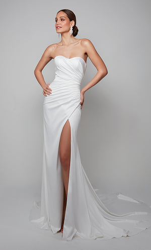 Duchess Alert! A wedding fit for a royal bride is beholden to one of our beautiful ALYCE Paris bridal dresses. ALYCE Paris unique wedding dresses are sure to allure on your big day at price points under $1,000. Find your perfect dream wedding dress available online in our bridal collection in a variety of styles, including black wedding dresses, long sleeve wedding dresses, plus size wedding dresses, even beach wedding dresses. Secret pro tip: call your local retailer to check if this dress can be a custom cut wedding dress in ivory, change the back or add a train! If you find the perfect long white dress, you can always cut down your long formal evening gown into any shapes of short bridal dresses as a last-ditch option!
