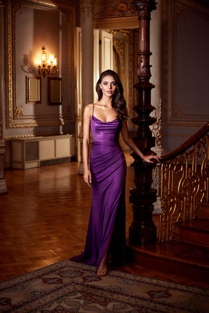 The straight/sheath (or column) silhouette gracefully skims to show off your body’s natural shape. A person with a thicker waist and wider hips will love this silhouette as it hides these flaws very comfortably. An ALYCE Paris formal straight/sheath evening dress style’s straight lines lengthen—and lend an effortless and modern air.