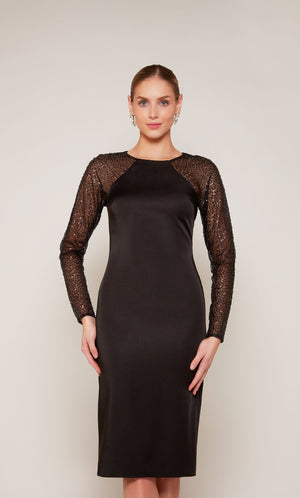 The straight/sheath (or column) silhouette gracefully skims to show off your body’s natural shape. A person with a thicker waist and wider hips will love this silhouette as it hides these flaws very comfortably. An ALYCE Paris formal straight/sheath evening dress style’s straight lines lengthen—and lend an effortless and modern air.