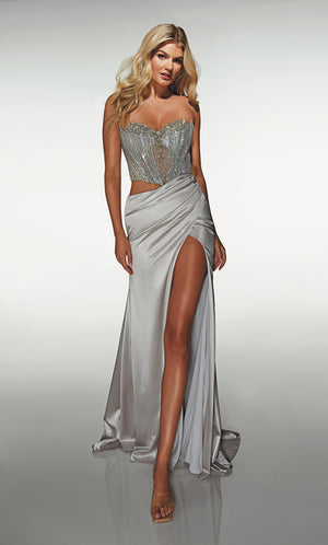 The straight/sheath (or column) silhouette gracefully skims to show off your body’s natural shape. A person with a thicker waist and wider hips will love this silhouette as it hides these flaws very comfortably. An ALYCE Paris formal straight/sheath evening dress style’s straight lines lengthen—and lend an effortless and modern air.