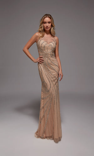 The straight/sheath (or column) silhouette gracefully skims to show off your body’s natural shape. A person with a thicker waist and wider hips will love this silhouette as it hides these flaws very comfortably. An ALYCE Paris formal straight/sheath evening dress style’s straight lines lengthen—and lend an effortless and modern air.