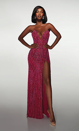 ALYCE Paris 62114 Alyce Long Plunging Neckline Slit Straight Dress