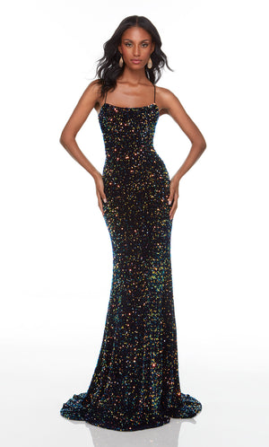 The straight/sheath (or column) silhouette gracefully skims to show off your body’s natural shape. A person with a thicker waist and wider hips will love this silhouette as it hides these flaws very comfortably. An ALYCE Paris formal straight/sheath evening dress style’s straight lines lengthen—and lend an effortless and modern air.