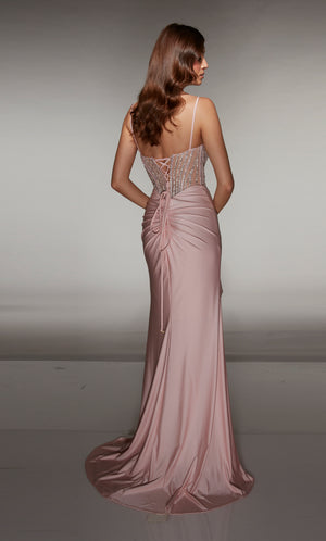 The straight/sheath (or column) silhouette gracefully skims to show off your body’s natural shape. A person with a thicker waist and wider hips will love this silhouette as it hides these flaws very comfortably. An ALYCE Paris formal straight/sheath evening dress style’s straight lines lengthen—and lend an effortless and modern air.