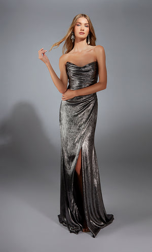 The straight/sheath (or column) silhouette gracefully skims to show off your body’s natural shape. A person with a thicker waist and wider hips will love this silhouette as it hides these flaws very comfortably. An ALYCE Paris formal straight/sheath evening dress style’s straight lines lengthen—and lend an effortless and modern air.